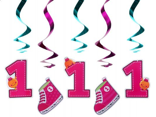 Dekoracja 1 urodziny. Roczek Dziewczynki - 5szt./op.