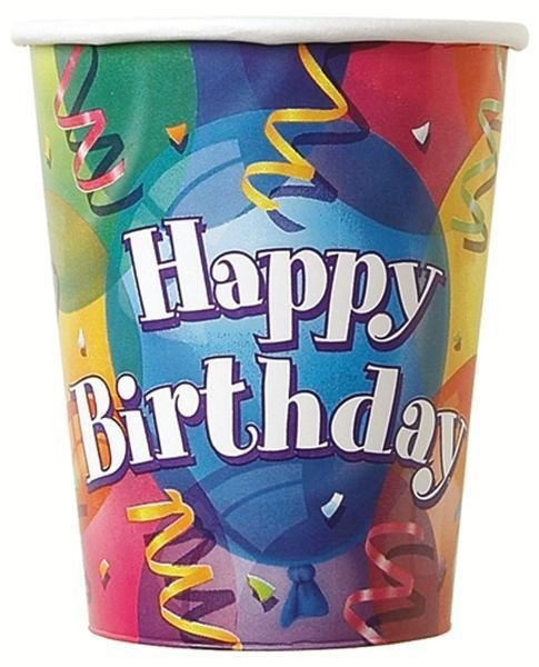 Kubki papierowe, urodzinowe-8szt./op.