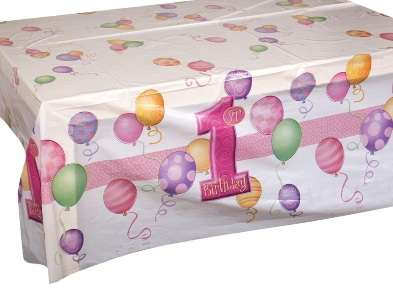 • Obrus z balonikami i dużą jedynką na pierwsze urodziny dziewczynki.