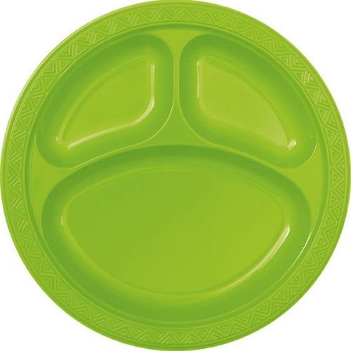 • Plastikowe, trójdzielne talerze w kolorze LIME GREEN.
