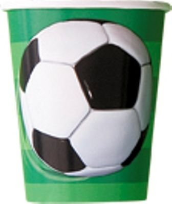 • 8 papierowych kubeczków z wizerunkiem piłki noznej.
