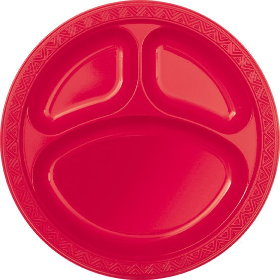 • Plastikowe, trójdzielne talerze w kolorze RUBY RED.