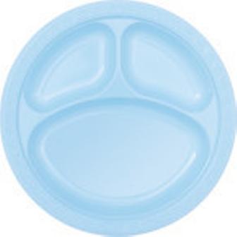 • Plastikowe, trójdzielne talerze w kolorze BABY BLUE (błękitne).