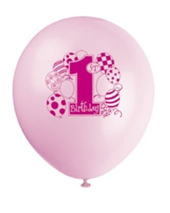 • 8 lateksowych balonów na pierwsze urodziny dziewczynki.
