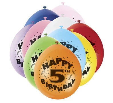 • 10 kolorowych balonów lateksowych na 5-te urodziny.