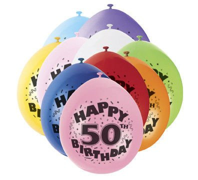 • 10 kolorowych balonów lateksowych na 50-te urodziny.