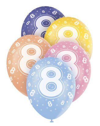 • Zaskoczą małego solenizanta.Na środku duża cyfra 8. Dookoła małe ósemki