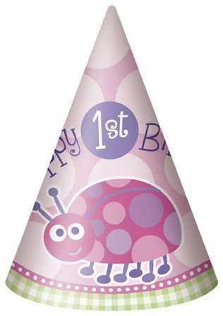 • 8 sztuk papierowych czapeczek na pierwsze urodziny dziewczynki.