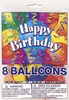 • 8 lateksowych, kolorowych balonów z napisem Happy Birthday.