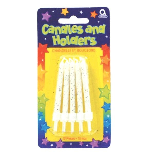 Białe świeczki urodzinowe  z brokatem 10szt./op.