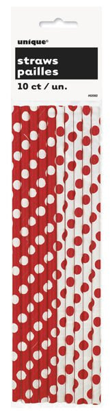 Słomki do napojów w kropki, czerwone10 szt./op.