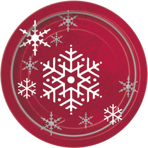 • Talerzyki papierowe o średnicy 18cm ze śnieżynkami.