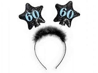 • Czarna opaska z futerkiem i gwiazdkami dla Pani obchodzącej sześćdziesiąte urodziny.
