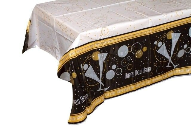 • Obrus foliowy o wymiarach 137cm x 213cm z napisem HAPPY NEW YEAR.