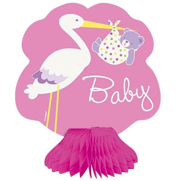 Dekoracja na stół z bocianem, różowa 4szt./op