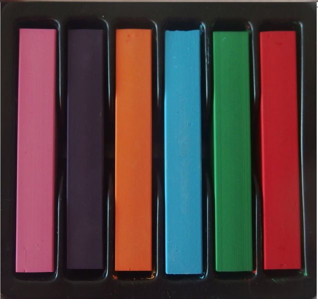 • Opakowanie zawiera 6 kawałków kredy o wymiarach 1cmx1cmx7cm w kolorach: różowym, fioletowym, pomarańczowym, błękitnym, zielonym, czerwonym. W komplecie rękawiczki ochronne i instrukcja użycia.