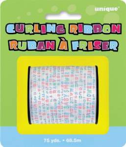 • Wstążka z nadrukiem Baby Shower-68 metrów długości i szerokości 0,5 cm.