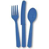 • Sztućce wykonane z twardego plastiku w kolorze niebieskim. W komplecie po 8szt.: łyżeczki, noże, widelce.