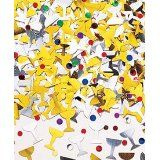 • Metalizowane, dwustronne, kolorowe konfetti w kształcie kieliszków do szampana i drobnych srebrno-złotych kółeczek.