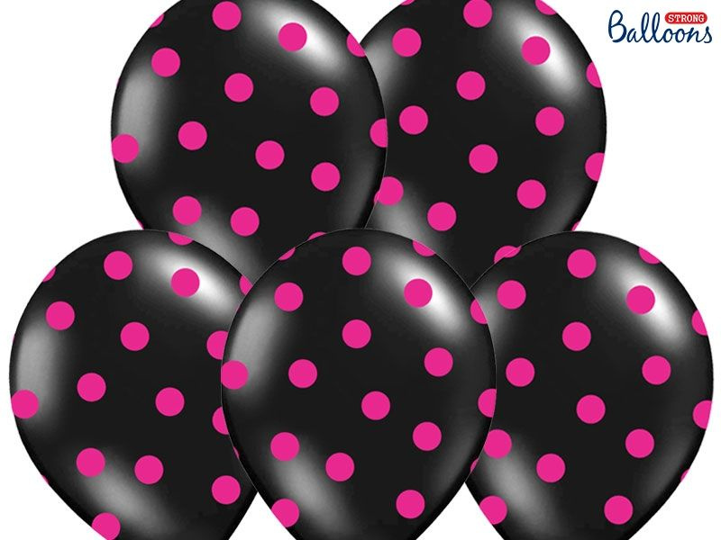 Czarne balony w różowe kropki-6 szt./op.