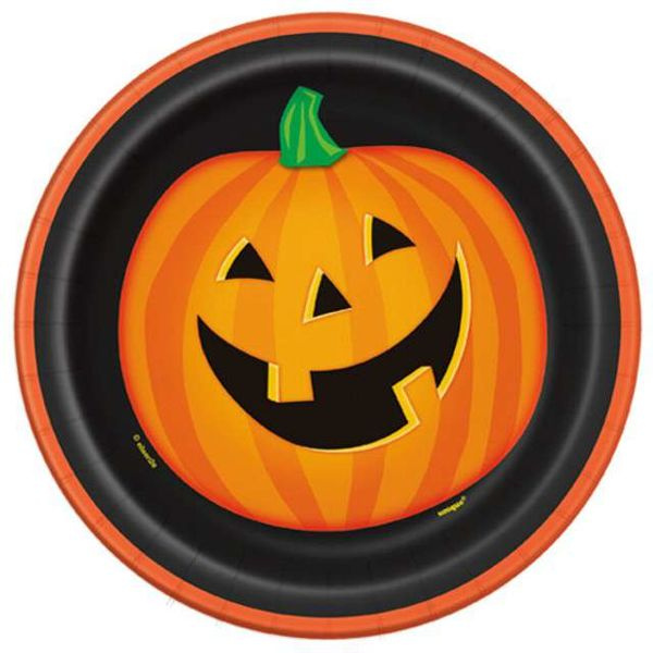 • Talerze z motywem Uśmiechniętej Dyni niezbędne na imprezie party.