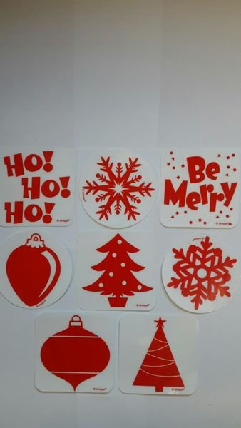 • Świąteczne czerwone naklejki na szklanki, świeczniki.