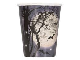 • Kubek papierowy z motywem nocy, księżyca i nietoperzy.