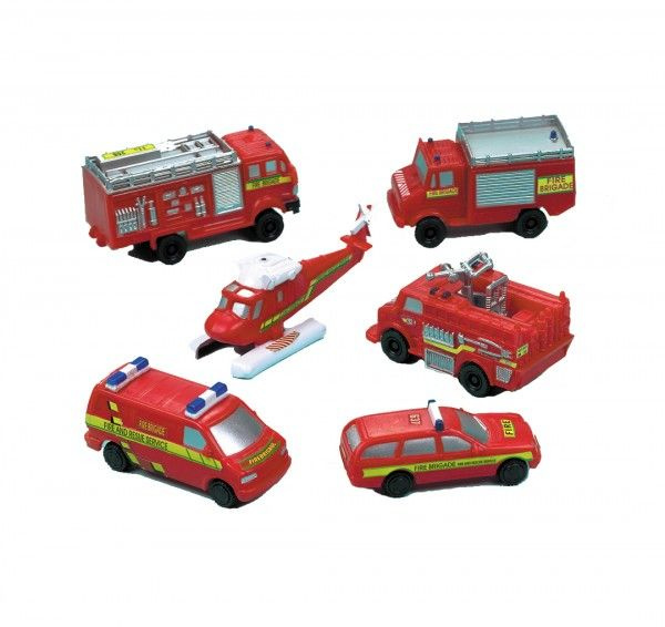 • W skład zestawu wchodzi .Pięć czerwonych samochodów i jeden helikopter