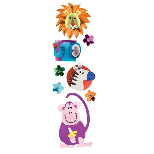 • Zebra, lew - król zwierząt, niebieski słonik, małpka z bananem. Naklejki na lodówkę, szafkę, biurko.