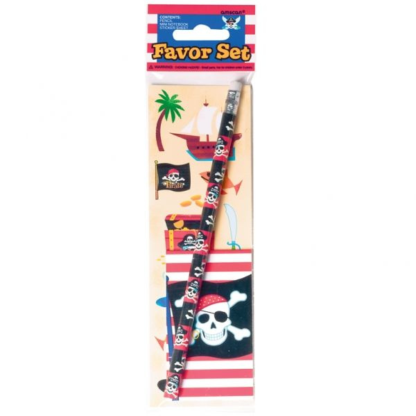 • Zestaw zawiera ołówek, notesik i naklejki - wszystko z motywami pirackimi.