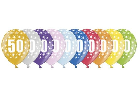 • Duża 50 w otoczeniu gwiazdek. Nadruk na całym balonie.